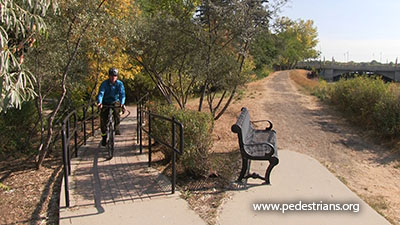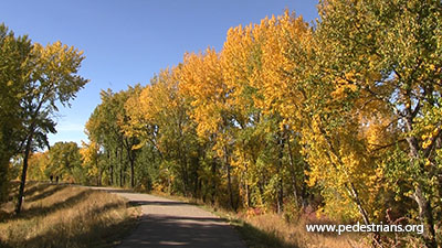 Here are some examples of the many existing trails along levee ROWs. They look just like ped/bike trails you would find anywhere. For more information on pedestrian use of utility ROWs, see the Right of Way page.